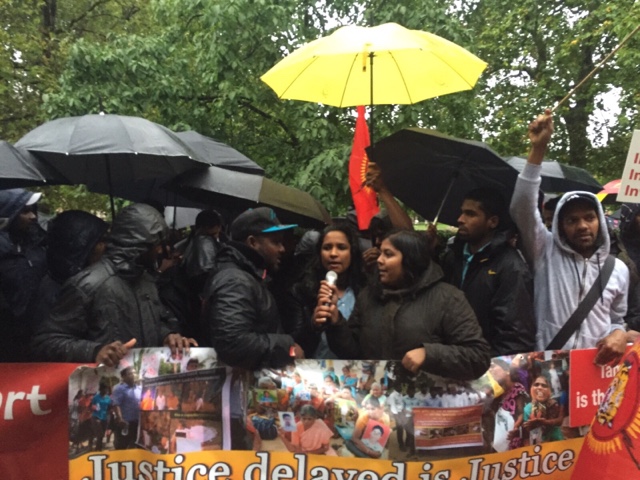 ஐநா மனித உரிமை பேரவையினால் இன்று அறிக்கை வெளியிடப்படுள்ள நிலையில் தமிழினத்தைத் தொடர்ச்சியாக கருவறுத்துக் கொண்டிருக்கும் சிறீலங்கா இனவாத அரசை அனைத்துலக நீதி விசாரணைக்கு உட்படுத்தக் கோரி லண்டனில் அமைந்துள்ள அமெரிக்கத் தூதரகம் முன்பாக, நீதிக்கான மாபெரும் போராட்டம் இன்று நடத்தப்பட்டது.